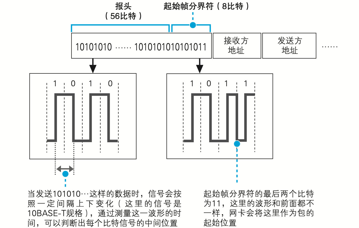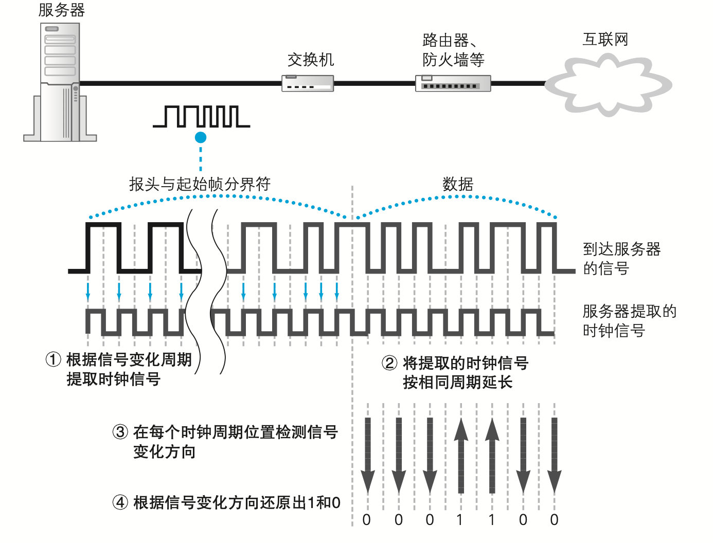从报头分离出时钟信号,进行同步,并延长时钟信号