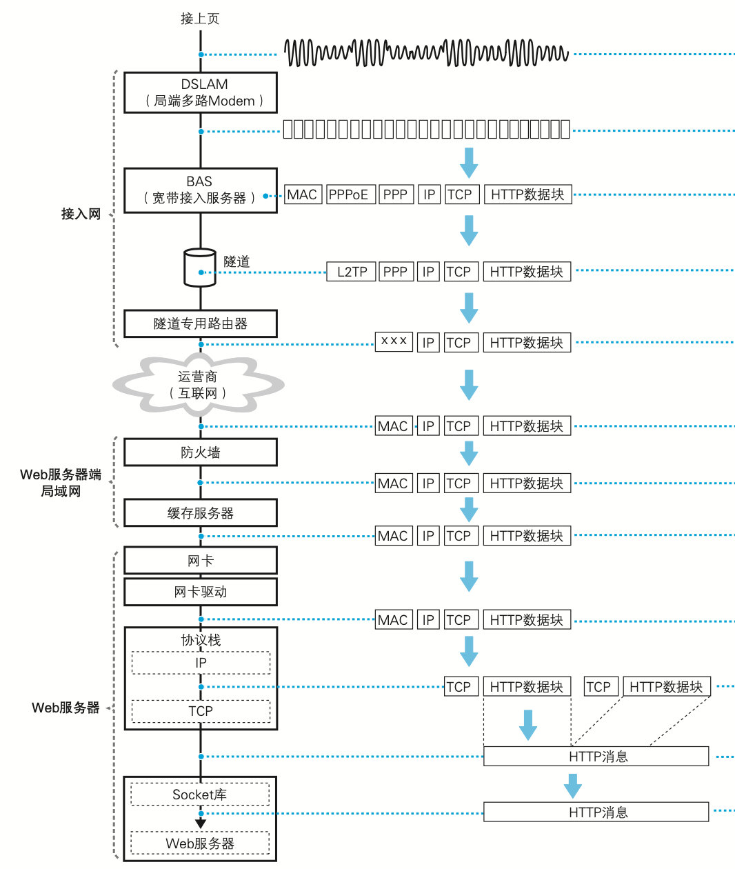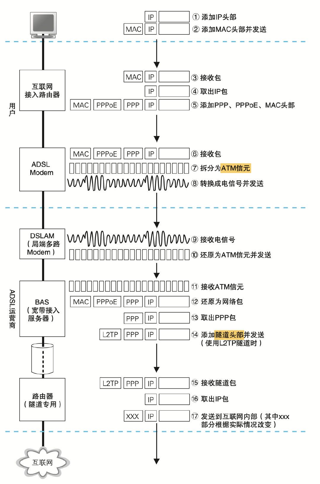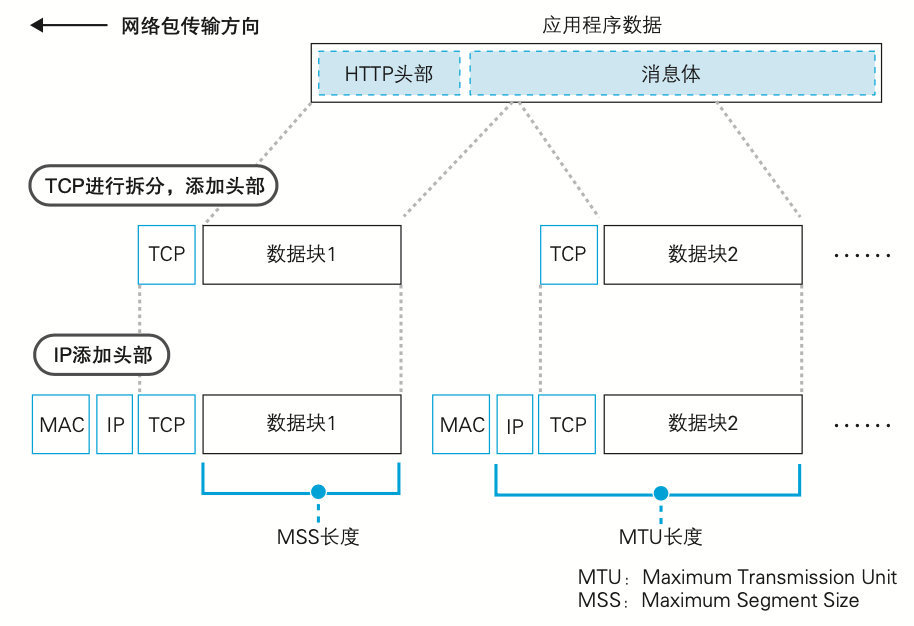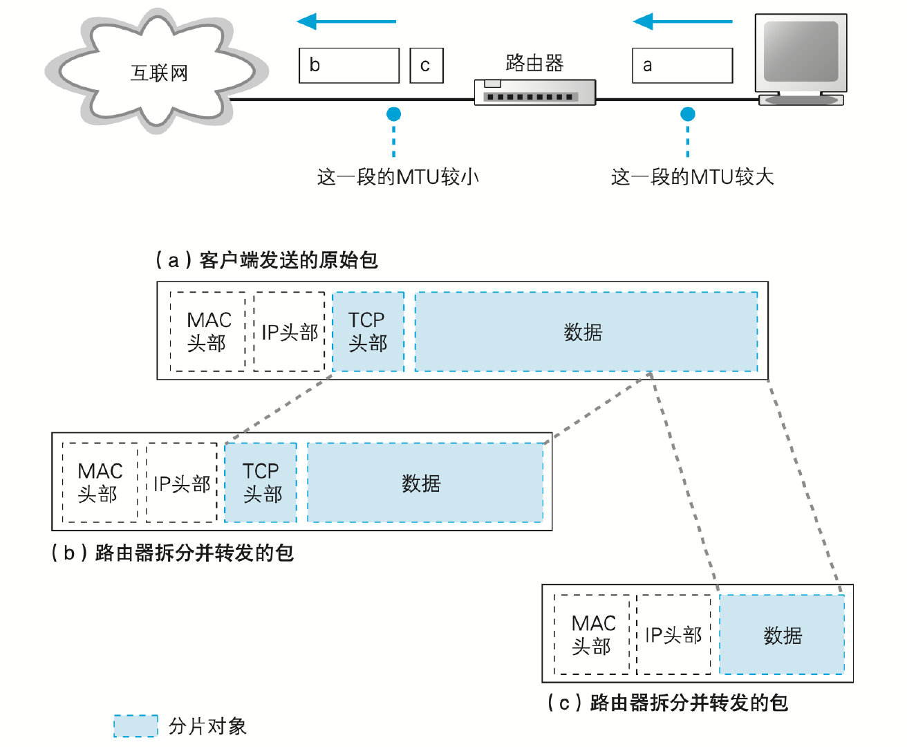 把数字信息分割成一个个小块,然后装入“包”packet中运送。相当于信件的运送包裹。