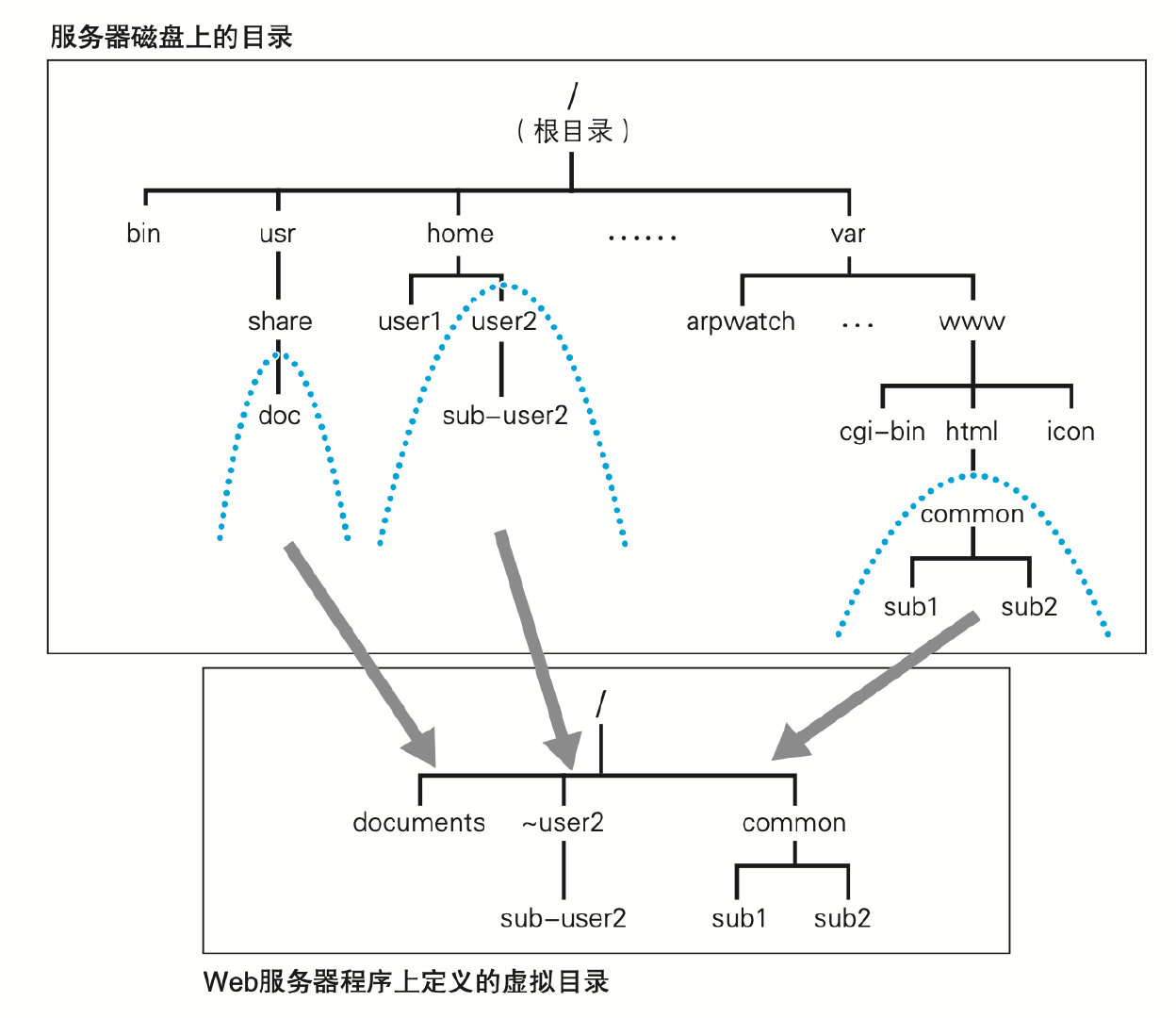 web服务器公开目录和实际目录不一样,是一个虚拟目录,实际目录映射成这个目录的